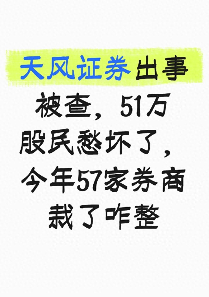 早上刷到天风证券被立案的新闻,手里的杯子差点没端稳。不是替券商可惜,是一下子念念到那些持股的东说念主——51万啊,这数字背后是几许个家庭的血汗钱。有像我隔邻老李那样,把退休工资拆成几份投进去的;也有小区门口开超市的小佳偶,念念靠炒股赚点钱给孩子凑膏火的。目下出这样档子事,夜里臆测王人得睁着眼到天亮。
