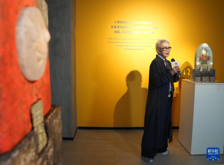 11月12日,策展东说念主、琉璃工房首创东说念主杨惠姗在展览现场先容展品。