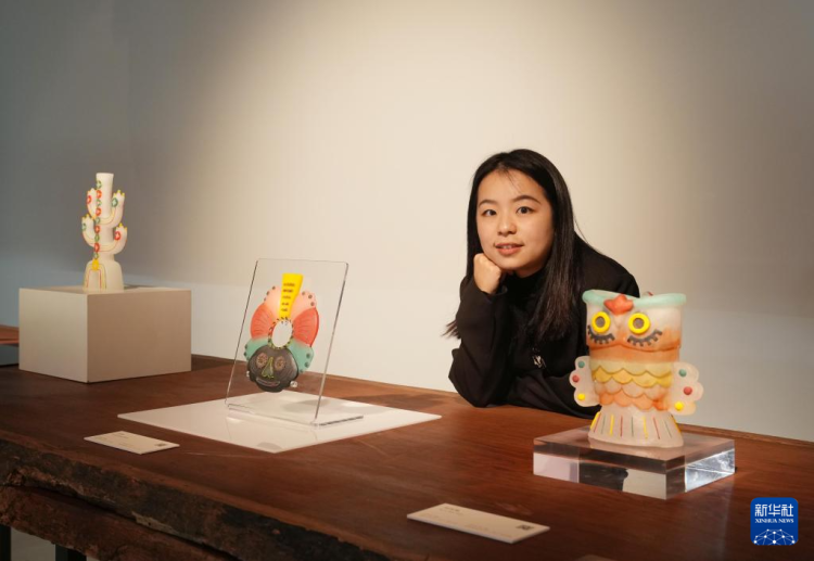 11月12日,清华大学好意思术学院博士生刘雨展示我方的作品。